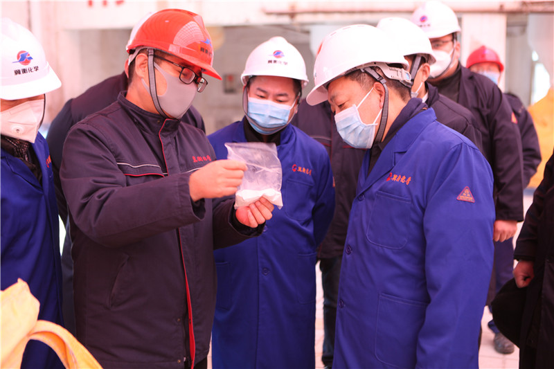1月28日大年初四,河北省衛健委醫藥保健局靳文龍局長到我公司視察消毒產品生產及貯備情況,靳局長到我公司二車間二氯崗位和工信部應急物資貯備庫房現場進行了查看,對我公司的工作給予了充分的肯定,同時要求我公司克服困難,保證生產,滿足社會防控消殺需求,為打贏這場沒有硝煙的戰爭做出應有的貢獻。