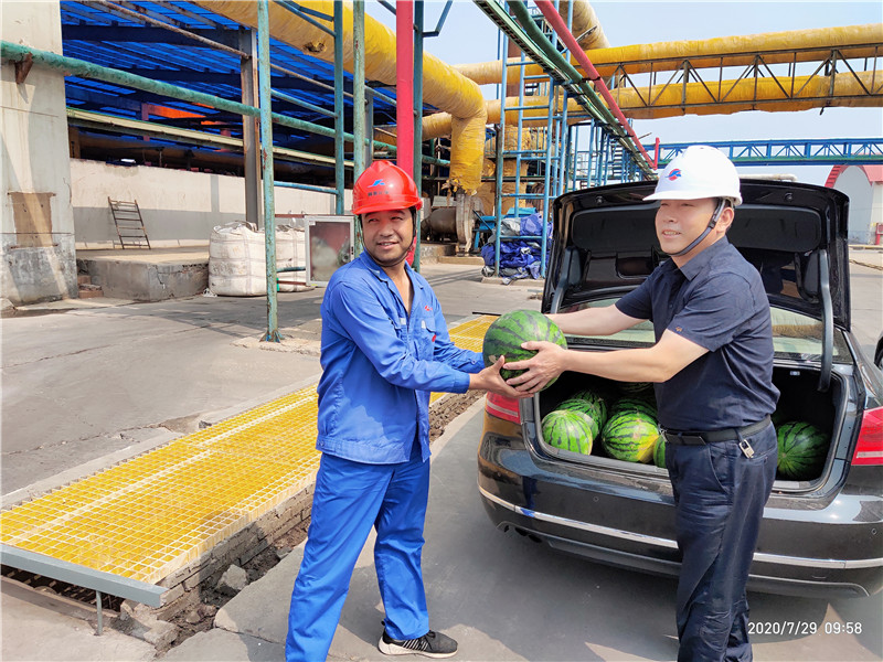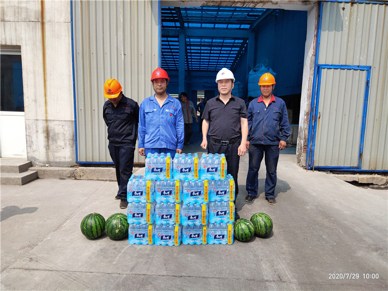 進(jìn)入三伏天后,一線職工的工作和生活情況時(shí)刻牽動(dòng)著集團(tuán)領(lǐng)導(dǎo)的心,7月29日上午,集團(tuán)工會(huì)主席韓紅喜一行來(lái)到我公司三車間熱解崗位,為工作在一線的職工送去礦泉水、西瓜等解暑物品,韓主席同時(shí)囑咐大家在保證做好安全生產(chǎn)工作的同時(shí),一定要照顧好自己的身體,注意勞逸結(jié)合和做好防暑工作,同時(shí)囑咐現(xiàn)場(chǎng)的管理人員做好職工后勤保障工作,切實(shí)保護(hù)好高溫天氣下廣大職工的身體健康。